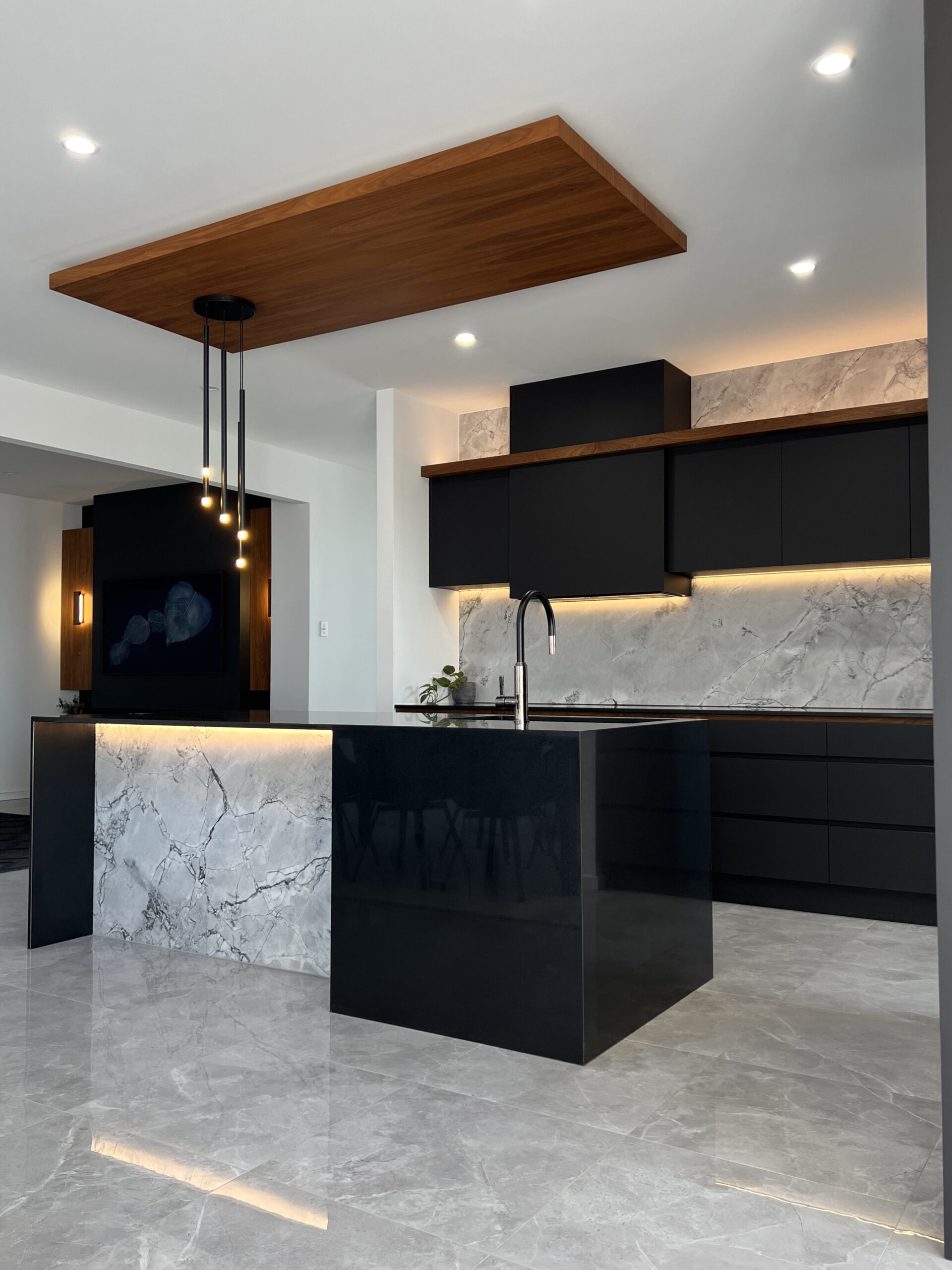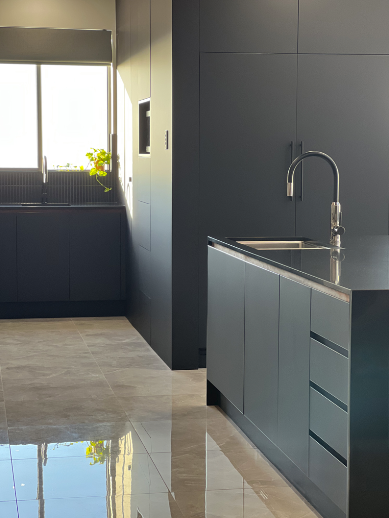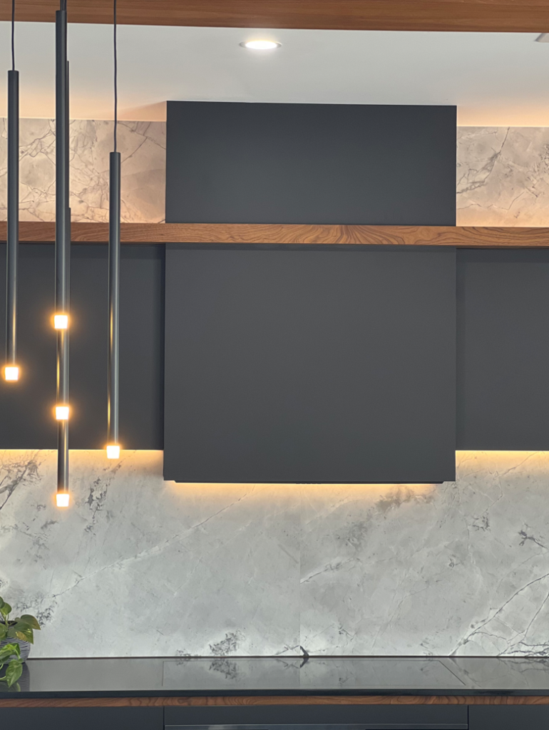 This project was driven by a clear vision to create a kitchen that felt as practical as it was personal. The clients wanted to embrace black as a dominant feature, while ensuring the space remained warm, inviting, and highly functional for everyday living. Careful material selection and thoughtful cabinetry design allowed the darker palette to feel balanced rather than overpowering. Integrated lighting became a defining element of the space, adding softness, highlighting key features, and enhancing the overall sense of depth.