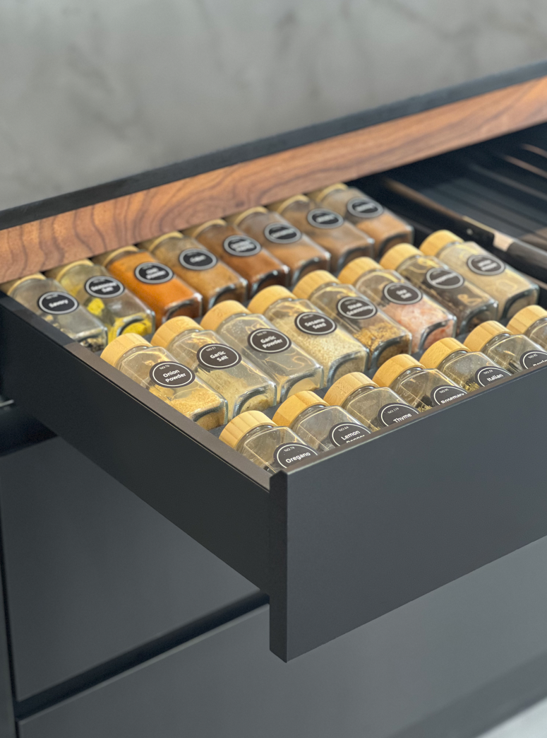 Paired with anthracite carcase internals, AvanTech YOU drawer systems, and Sensys Obsidian hinges, the internal architecture of the kitchen is as considered as its exterior. The result is a space where opening a drawer reveals as much design intent as the façade itself, something the clients now consider indispensable. Beyond its refined exterior, the kitchen is designed to support everyday living with ease.