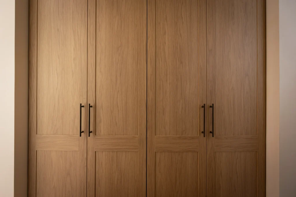 Robby and Mat’s first kids’ bedroom was designed with younger children in mind, bringing great vibrancy and a sense of fun. The room combined a cosy, country feel with practical design, featuring wardrobes fitted with Sensys Obsidian Black hinges conveniently placed near the twin beds. A green wardrobe and plenty of toys added personality and cuteness to the space. The second bedroom took on a different approach. With a beige, neutral palette, the boys kept the design adaptable so it could grow with a child over time.